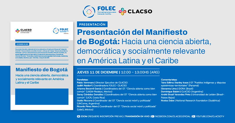 El jueves 11 de diciembre se realizó la presentación pública del “Manifiesto de Bogotá: hacia una ciencia abierta, democrática y socialmente relevante en América Latina y el Caribe”.